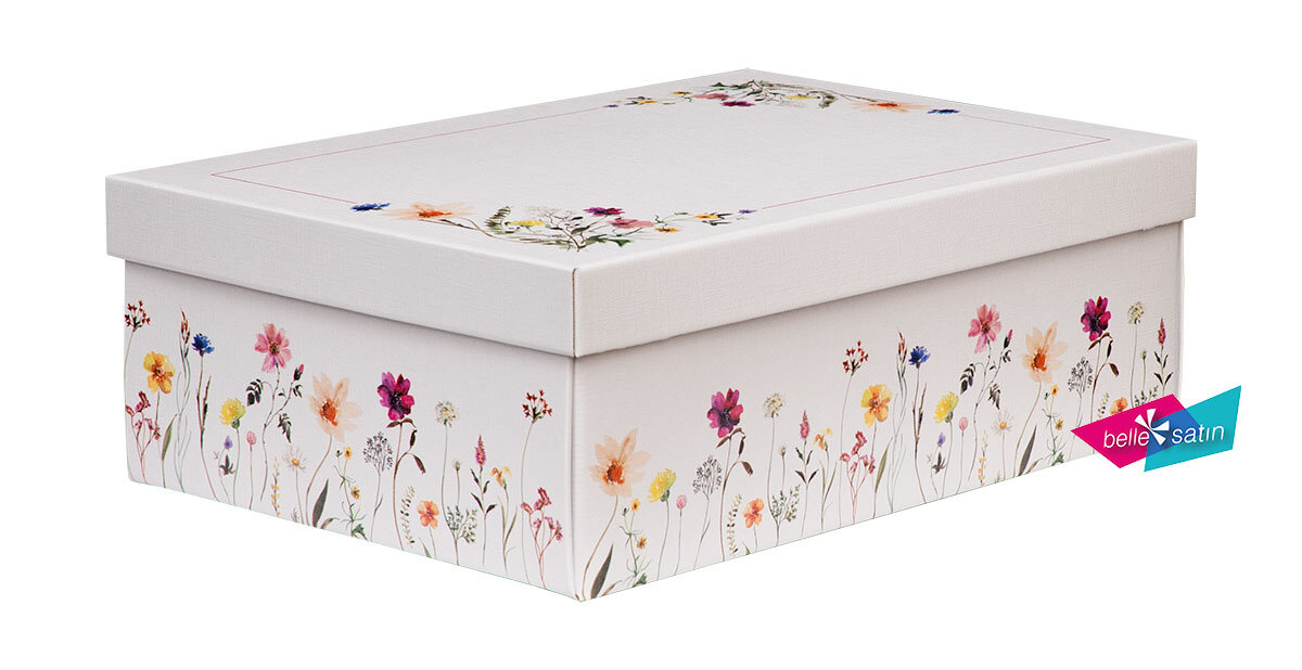 bílá krabička s víčkem s květinovým vzorem, nová jarní kolekce dárkových luxusních krabiček