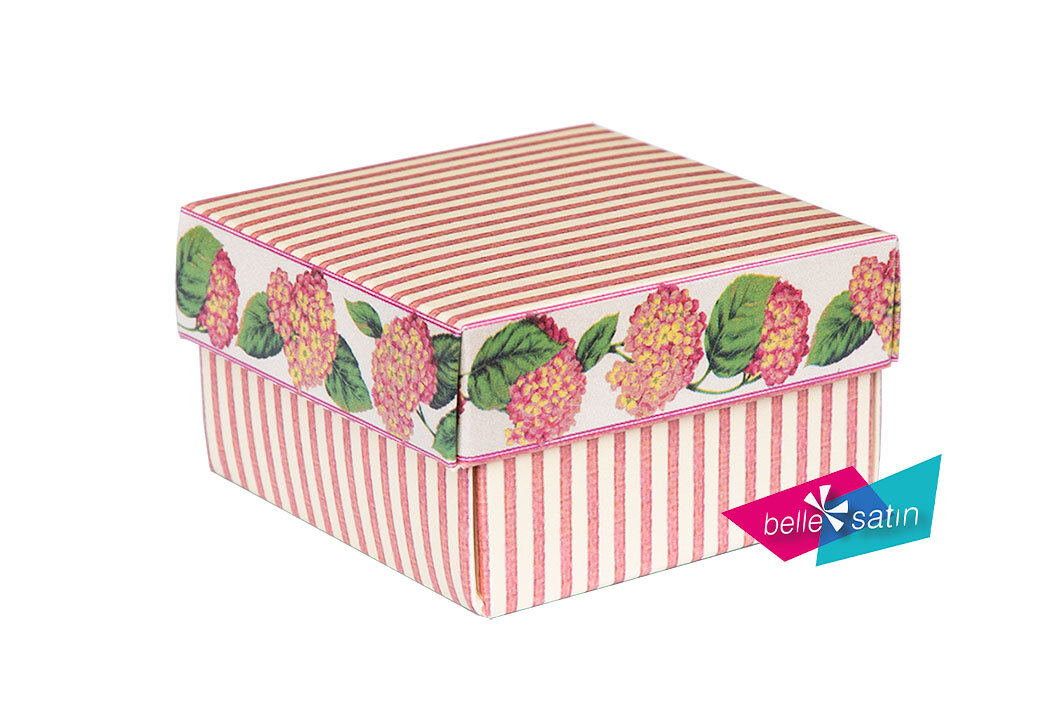 malá elegantní dárková krabička s víčkem zdobené vzorem květin a červených pruhů