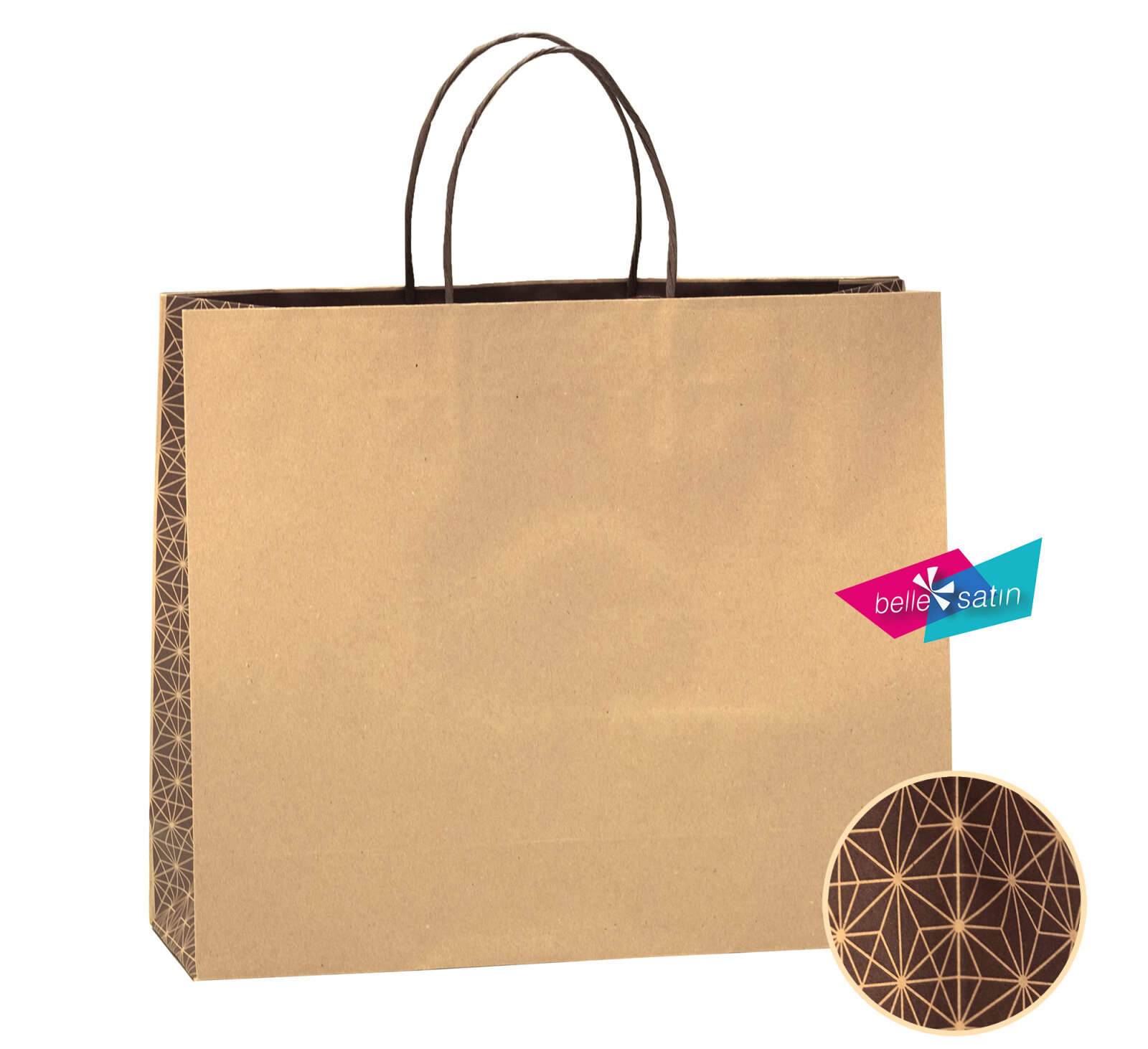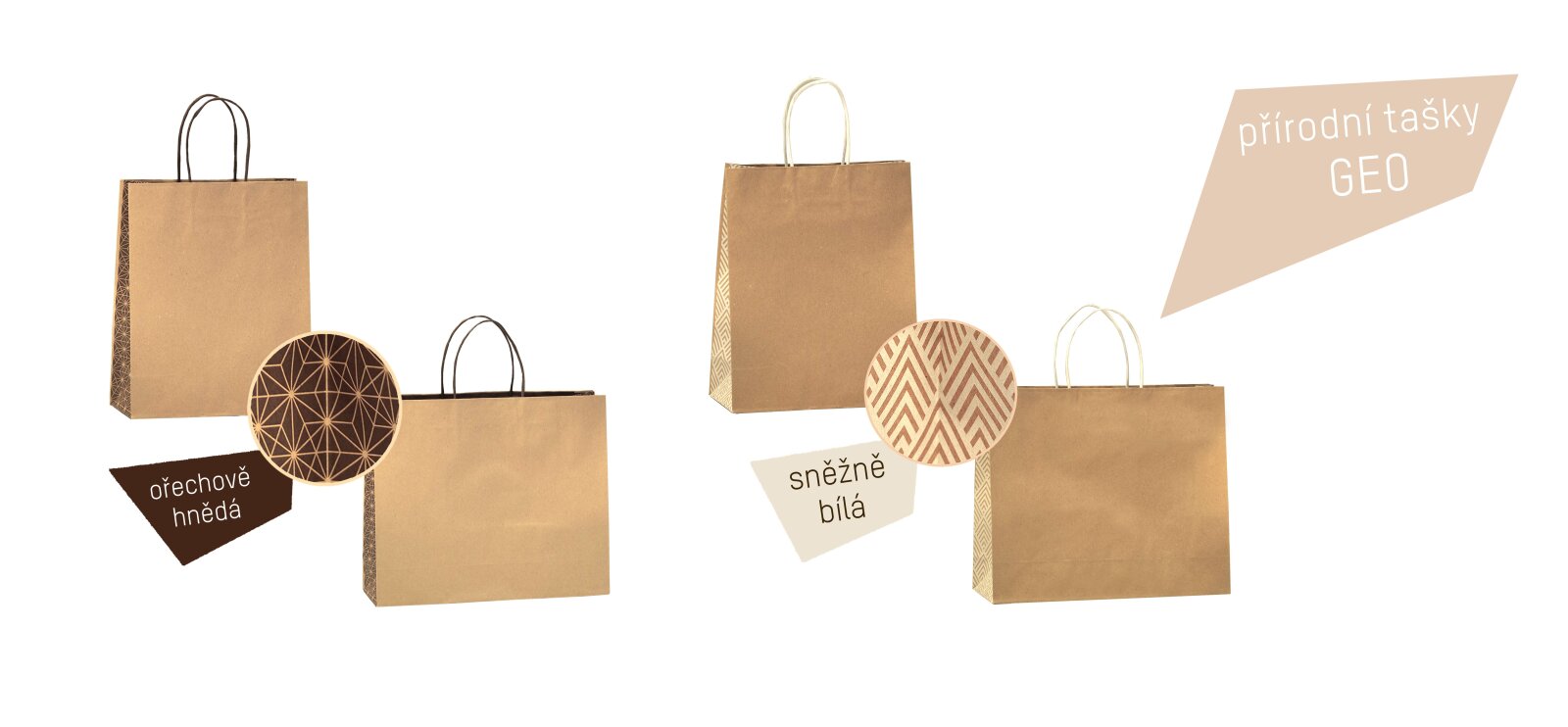 Nová kolekce přírodní tašek se vzorem, elegantní černý dekor u přírodní tašky v kaštanové barvě. Dárkové tašky pro různorodé využití.