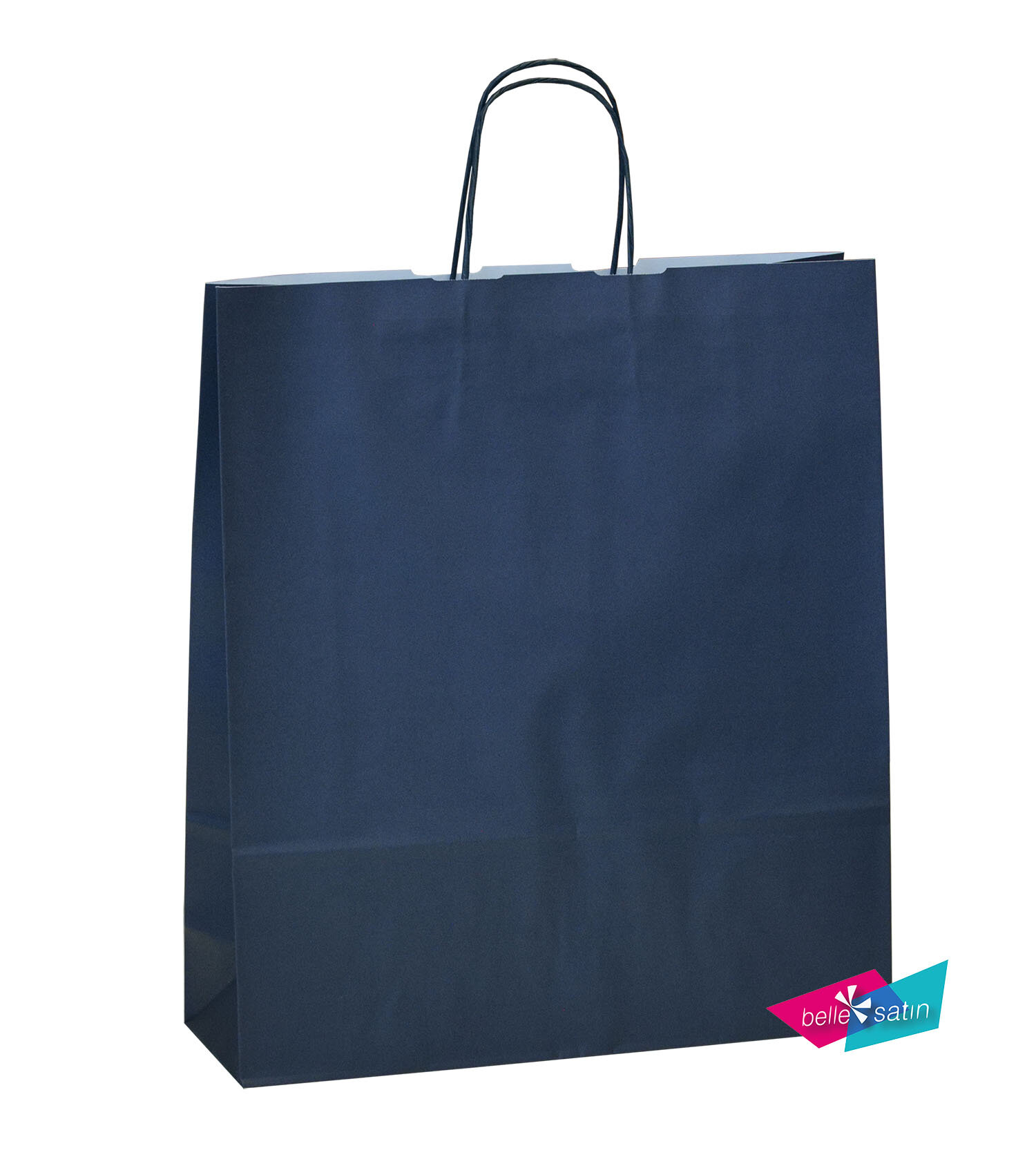 elegantní přírodní papírová taška s textilním ouškem v tmavě modré barvě