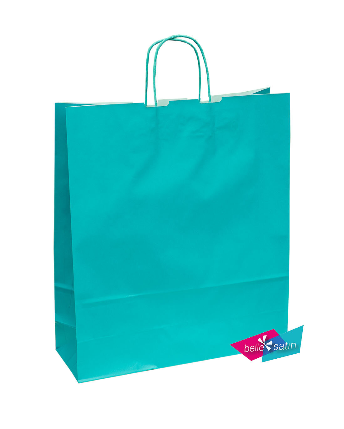 elegantní přírodní papírová taška s pevným kroceným papírovým ouškem v azurové barvě